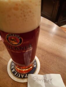 パウラーナーに行く予定はなかったんだけど、どこかで隣の席になったおっちゃんに「この時期にしか飲めないビールがあるから飲んでみたら?」みたいなことを言われ、ビール名を紙にまで書いてくれたので、せっかくだから飲んでみた!