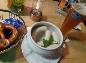 あまりにも刺激が強かったので、ビールのお供にヴァイスブルスト。