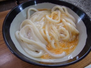 かまたまは、まだ製麺所の時代に、ご近所さんがうどんに卵をONして食べていたのがルーツと言われてるようになったんだって。